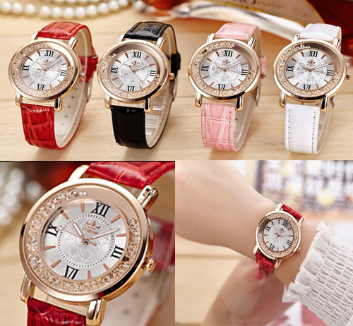 2. Модные женские часы под розовое золото с кристаллами. 4 цвета на выбор. Часовой механизм кварцевый. Диаметр диска 40 мм. |